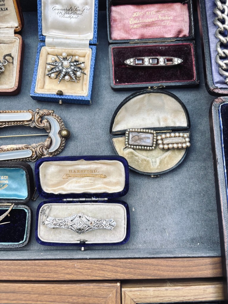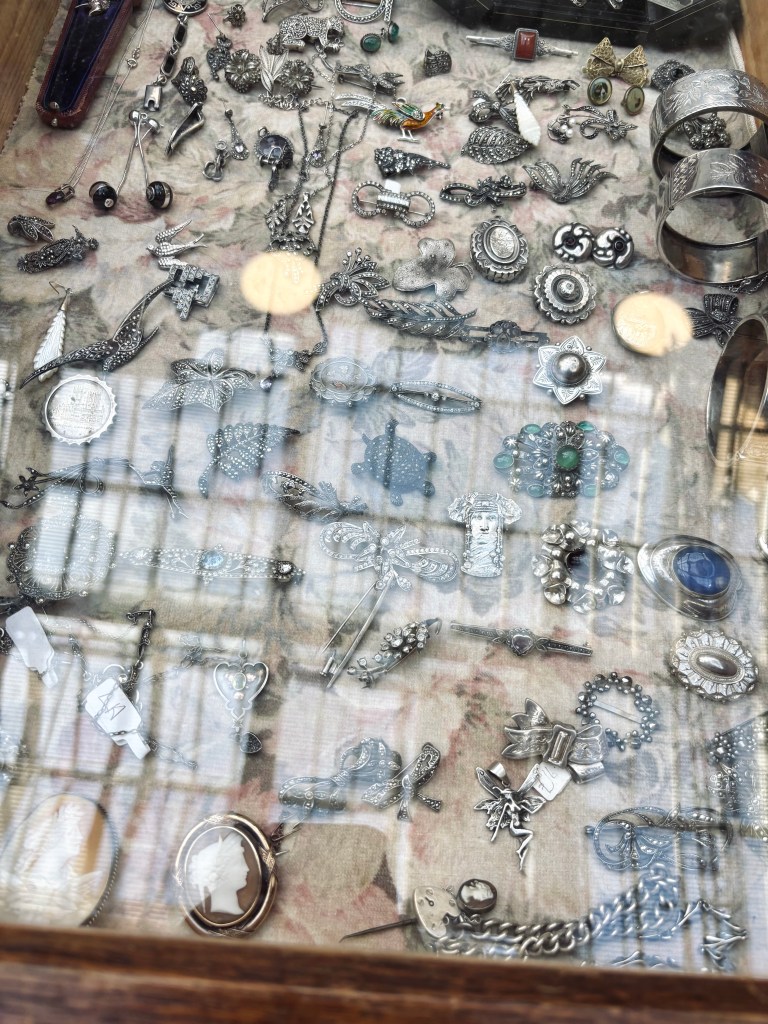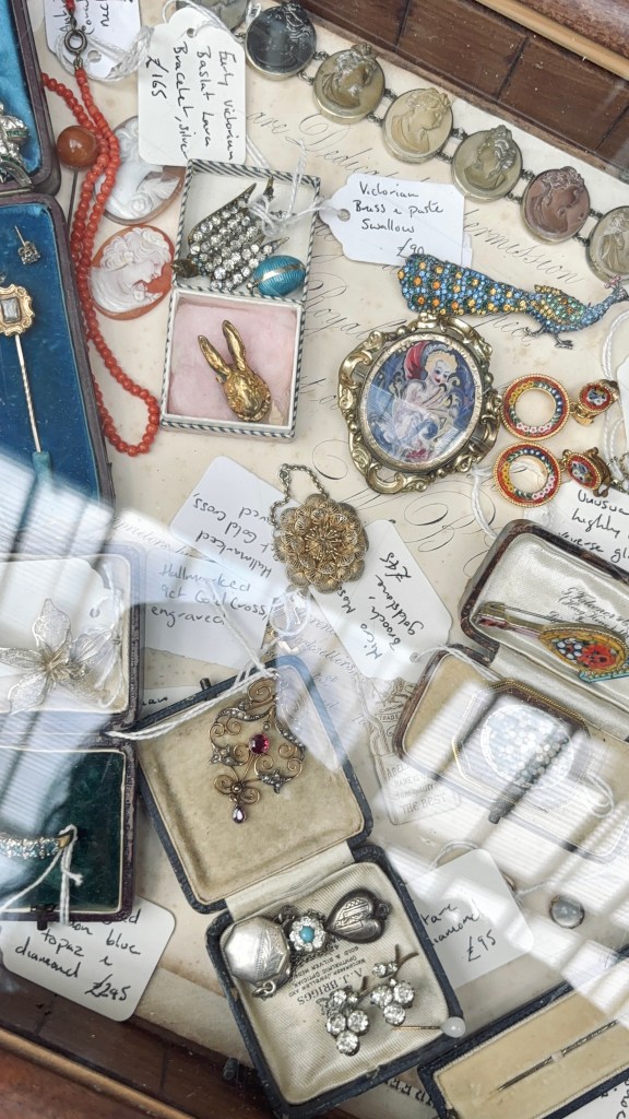 The place was full of beautiful things! Elegant jewellery, delicate objects, and a surprising amount of mourning jewellery, which I absolutely loved seeing in person.