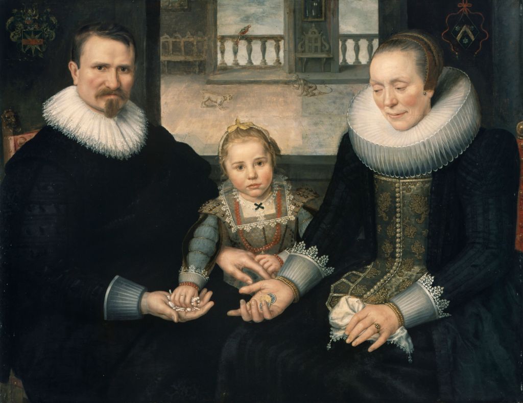 Sugar’s moral dimension also appears in the visual culture of the domestic interior. This is particularly clear in family portraits that stage an encounter between sweetness and restraint. In a seventeenth-century interior scene depicting a man, woman, and child, the father offers the child a small dish of sweetmeats, while the mother simultaneously presents a few coins. The child, positioned between the two adults, reaches toward the sweets, caught between immediate sensory pleasure and monetary value. Such compositions do not simply depict family life but visualise moral choice. The pairing of sugar and money evokes contemporary concerns about moderation, desire, and education, especially within Calvinist moral discourse. Jacob Cats articulated this anxiety explicitly when he warned that youth were “overburdened with sugar,” framing sweetness as a temptation that required careful regulation [32]. Within this context, sugar operates not only as a material commodity but as a moral instrument through which questions of upbringing and restraint were negotiated.